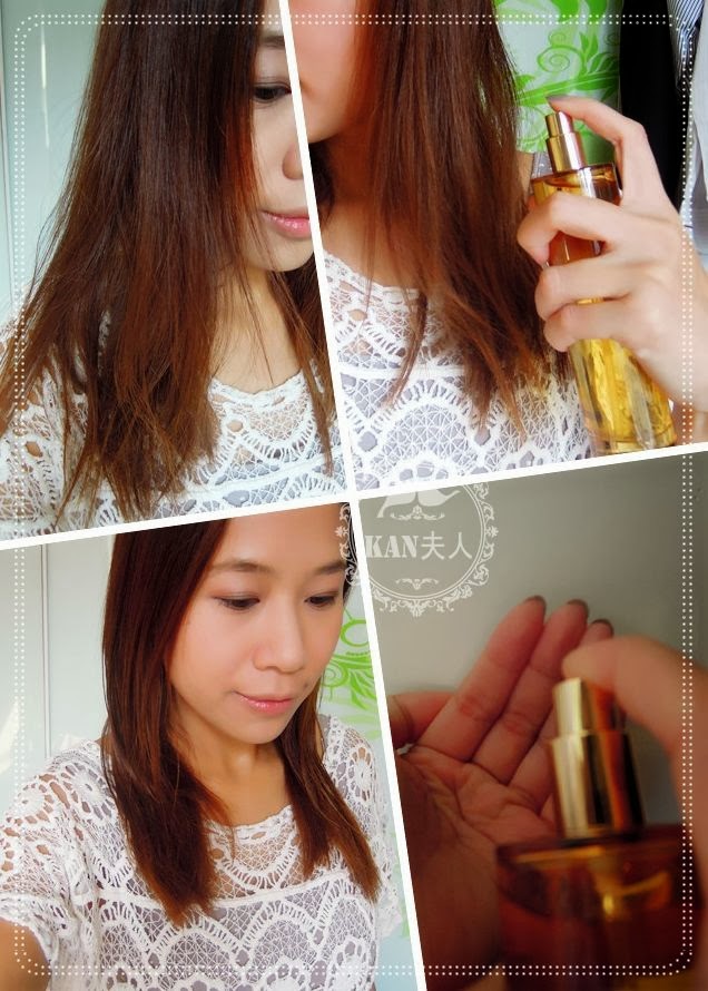 一早起身頭髮亂七八糟, 可以出門口前噴一噴護理油, 原理同髮尾油一樣, 順滑髮絲, 仲有天然香味, 大約可以keep到3-4小時香味, 好勁!! 小女第一次用時因為掌握不好, 噴得太多, 之後轉為噴在手心, 再搽上髮尾, 這樣更好喔~~!!